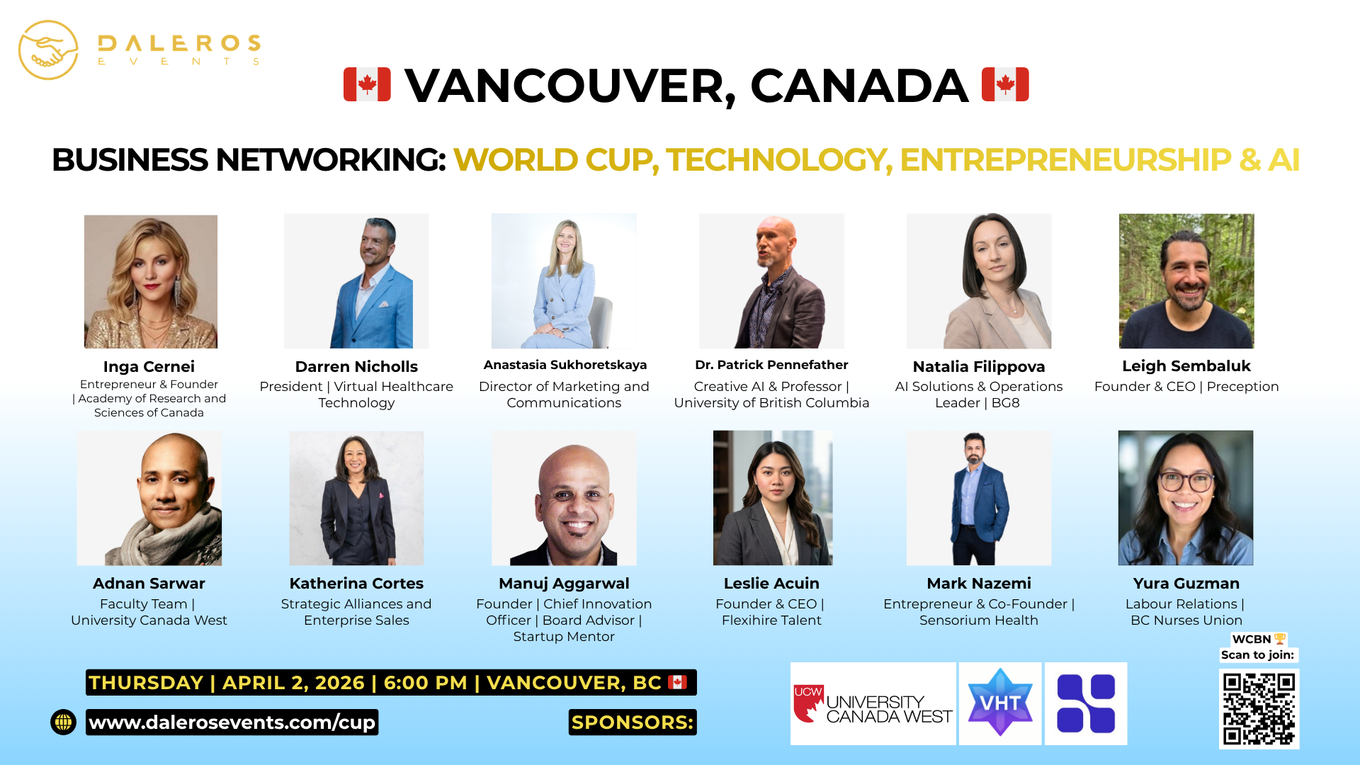An international platform and curated event series connecting global visitors, entrepreneurs, professionals, investors, and corporate leaders gathering in Vancouver during the 2026 World Cup season.